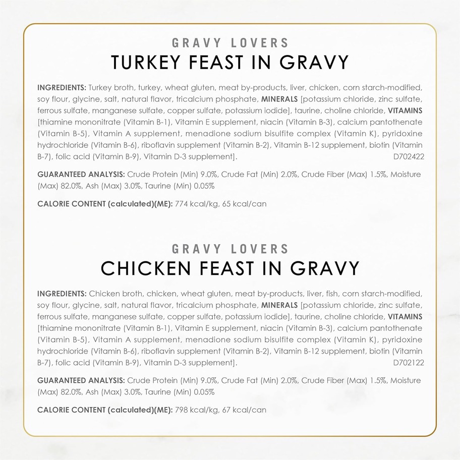 - An irresistible, protein-rich Fancy Feast Gravy Lovers cat food taste offering a gourmet turkey, chicken or beef cat food meal with an enticing aroma and a light, savory gravy
