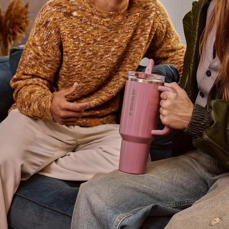 - PERFECT FIT: With a textured comfort-grip handle and a narrow base that fits most car cup holders, the Stanley Quencher is as easy to carry as it is to store. Ideal for your commute, gym bag, or next road trip, this tumbler is always right by your side.